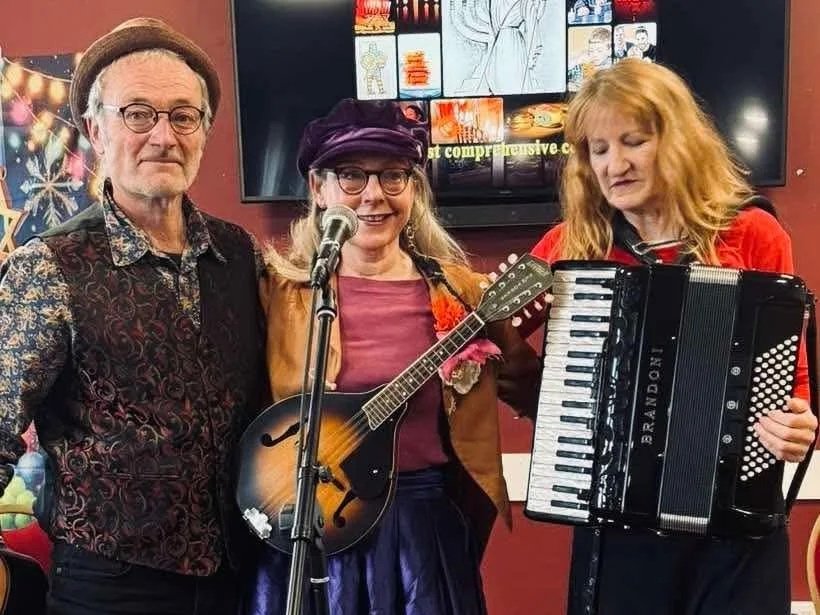 Balkan Hill are a North Essex based trio who share a passion for Eastern and other European Folk and Jazz, and Klezmer music. They play a diverse range of popular and lesser known songs in mainly authentic original language. They are Suzy Cramer- vocals, mandolin, mandola Kev Wortley-guitar. Julie Robinson-accordion.
