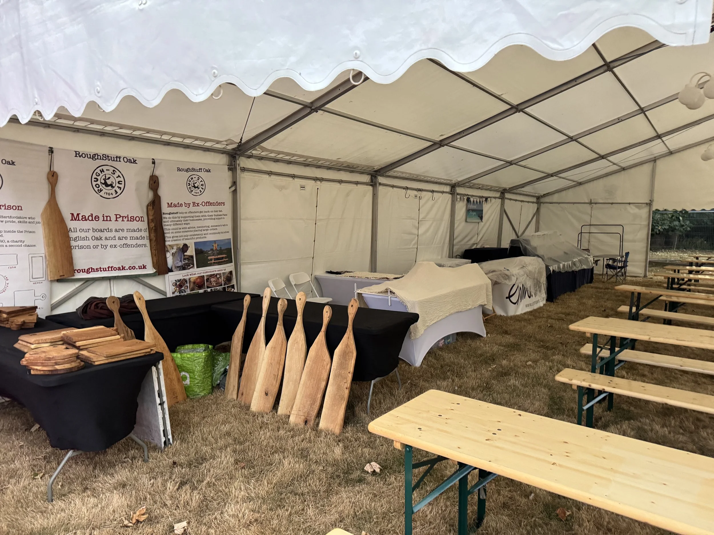 You bring your own 3×3 m gazebo: £150 + VAT (weekend rate).